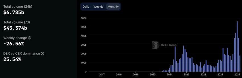 Con un volumen total de trading alcanzando los 563 mil millones de dólares en enero de 2025, los DEX están facilitando el trading de memecoins y sirviendo como un puente para integrarlas en el ecosistema financiero más amplio.
