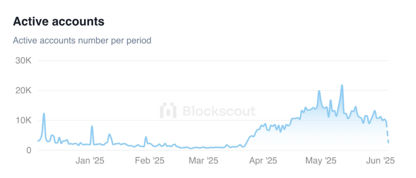 A medida que la manía del mercado de memecoins comenzó a desvanecerse a finales de mayo, la actividad de los usuarios en Shibarium también disminuyó. Para el 5 de junio, el número de direcciones activas diarias había caído a alrededor de 9,000, una caída de más del 55% en solo tres semanas.