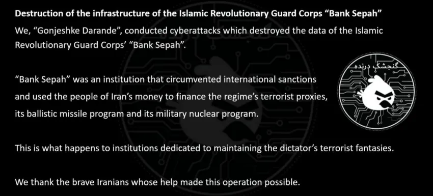 Poco antes del ataque a Nobitex, Gonjeshke Darande comprometió sistemas en Bank Sepah. Este es un banco iraní de propiedad estatal.